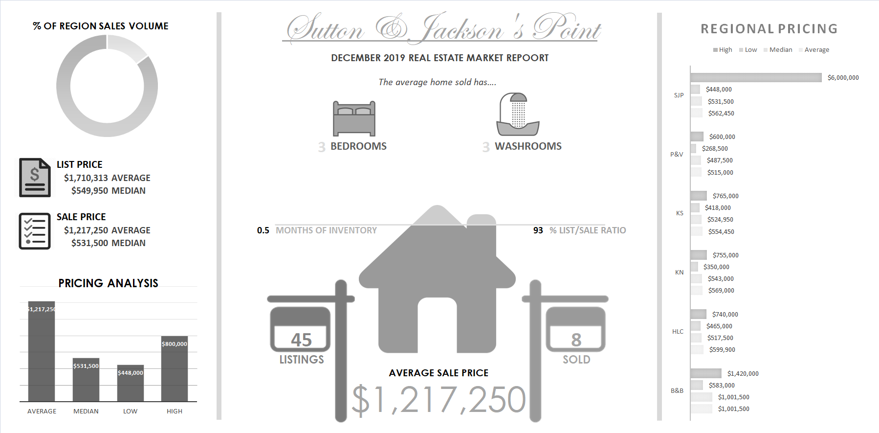 Sutton & Jackson's Point Infographic - the average size of a home in Sutton & Jackson's Point has 3 bedroom and 3 washrooms. $1,710,313 is the average list price of a home in Sutton & Jackson's Point. There are currently 45 homes for sale in Sutton & Jackson's Point. Only 9 homes sold, meaning that there is only 0.5 months of real estate inventory avalible in Sutton & Jackson's Point. Sutton & Jackson's Point % LIST/SALE RATIO was 93%. Sutton & Jackson's Point highest sale price for the month was $1,217,250. Sutton & Jackson's Point lowest real estate sale price was n/a. Sutton & Jackson's Point Median homr sale price for the month was $1,718,475. Sutton & Jackson's Point average real estate taxes for the month were $5,265. Sutton & Jackson's Point average days on market for a property listed for sale was 67.