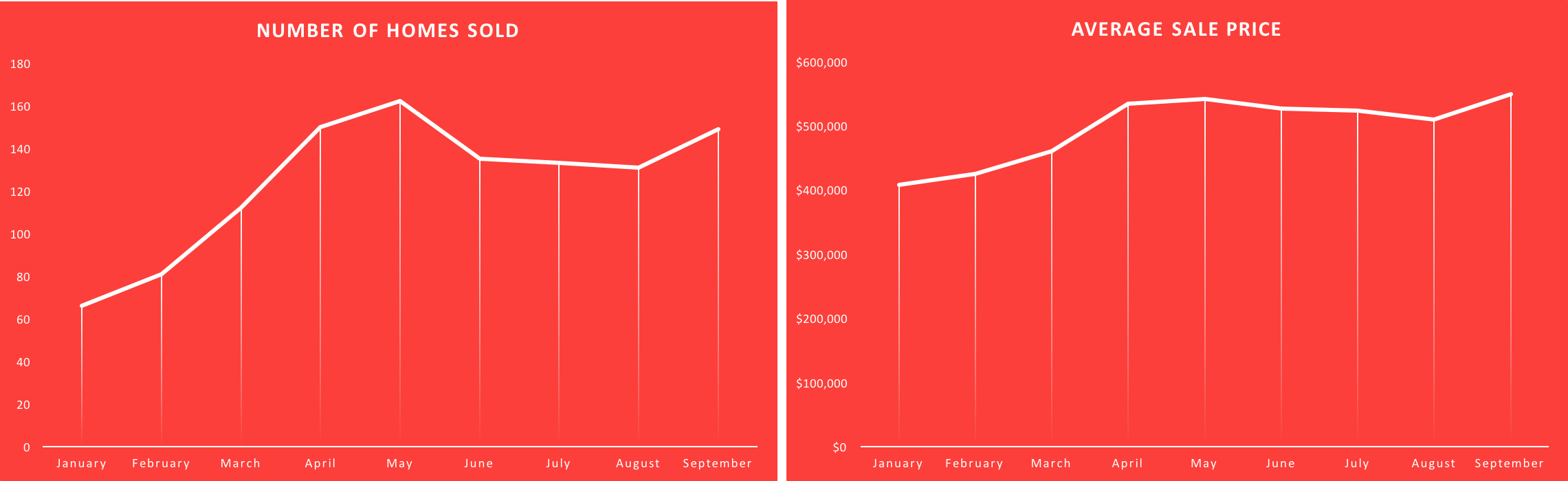 Average price, much alike the price floor, has been a slow and steady pace, with a major lull in price growth and a noticeable decrease in price during the summer market.