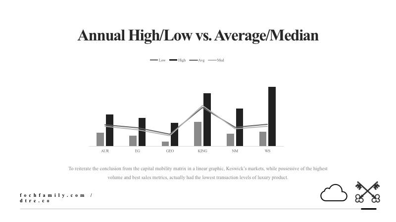 We are currently seeing a shrinking spread in the high and low end of the market in York Region, which demonstrates a gravitation towards the average price, and a decrease in price disparity and separation of class in real estate. This is a clear indication that all of the new home inventory (housing starts), built in the last few years, is combatting land scarcity and actually decreasing the value of land on a fundamental level, not only as a function of demand.