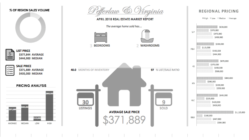 Pefferlaw & Virginia Infographic the average size of a home in Pefferlaw & Virginia has 3 bedroom and 3 washrooms $880,133 is the average list price of a home in Pefferlaw & Virginia .There are currently 62 homes for sale in Pefferlaw & Virginia .only 9 homes sold meaning that there is only 124.0 months of real estate inventory avalible in Pefferlaw & Virginia Pefferlaw & Virginia % LIST/SALE RATIO was 94 Pefferlaw & Virginia highest sale price for the month was $832,350 Pefferlaw & Virginia lowest real estate sale price was $489,800 Pefferlaw & Virginia Median hom sale price for the month was $880,133 Pefferlaw & Virginia average real estate axes for the month were $4,882 Pefferlaw & Virginia average days on market for a property listed for sale was 43