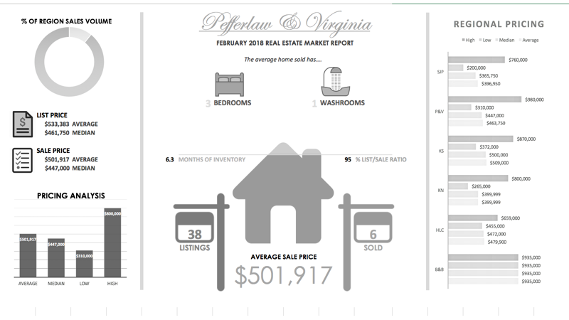 Pefferlaw & Virginia real estate market infographic The average size of a home in Pefferlaw & Virginia has 3 bedrooms and 1 washrooms. $533,383 is the average list price of a home in Pefferlaw & Virginia while the average sale price is . There are currently 38 homes for sale in Pefferlaw & Virginia home sold in the area, meaning that there are 6.0 months of real estate inventory available in Pefferlaw & Virginia . Pefferlaw & Virginia s list price to sale price ratio was 95 %. Pefferlaw & Virginia s highest real estate sale price for the month was $980,000 . Pefferlaw & Virginia s lowest real estate sale price for the month was $310,000 . Pefferlaw & Virginia median home sale price for the month was $447,000 . Pefferlaw & Virginia average real estate taxes for the month were $2,379 Pefferlaw & Virginia average days on market for a property listed for sale was 47 days.