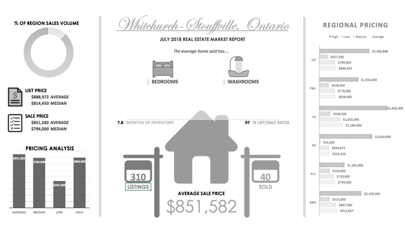 Whitchurch-Stouffville, Ontario Infographic the average size of a home in Whitchurch-Stouffville, Ontario has 3 bedroom and 4 washrooms $888,972 is the average list price of a home in Whitchurch-Stouffville, Ontario .There are currently 310 homes for sale in Whitchurch-Stouffville, Ontario .only 50 homes sold meaning that there is only 3.9 months of real estate inventory avalible in Whitchurch-Stouffville, Ontario Whitchurch-Stouffville, Ontario % LIST/SALE RATIO was 97 Whitchurch-Stouffville, Ontario highest sale price for the month was $851,582 Whitchurch-Stouffville, Ontario lowest real estate sale price was $825,000 Whitchurch-Stouffville, Ontario Median hom sale price for the month was $900,122 Whitchurch-Stouffville, Ontario average real estate taxes for the month were $4,198 Whitchurch-Stouffville, Ontario average days on market for a property listed for sale was 31 days.